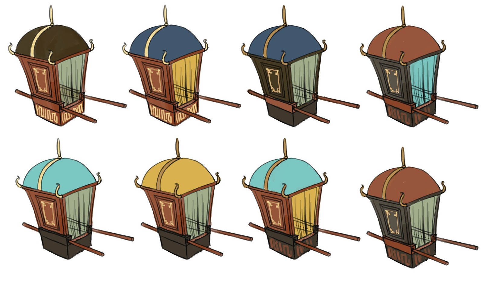 Made the tapestries narrower to match the size in the boards, but now the width is similar to that of the pillars, which are also red. I'll keep working on it.